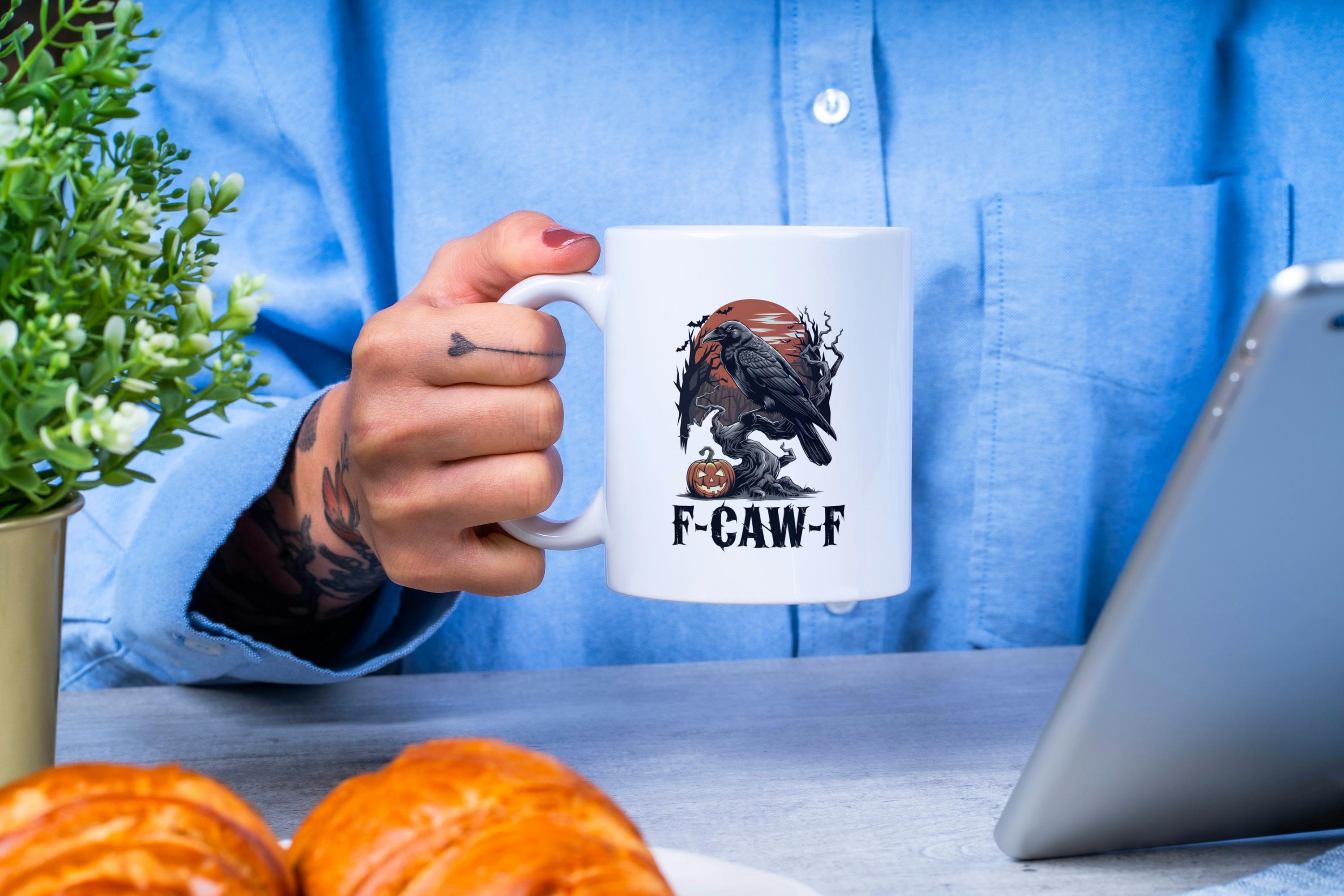 A sarcastic Halloween crow design mug perfect for those who enjoy a touch of humor in their morning routine. Ideal for Halloween enthusiasts, goth lovers, and those with a rebellious spirit. Great for spooky celebrations and adding a bit of personality to your coffee or tea breaks.