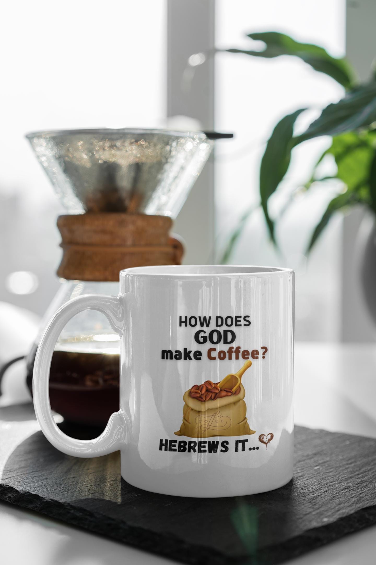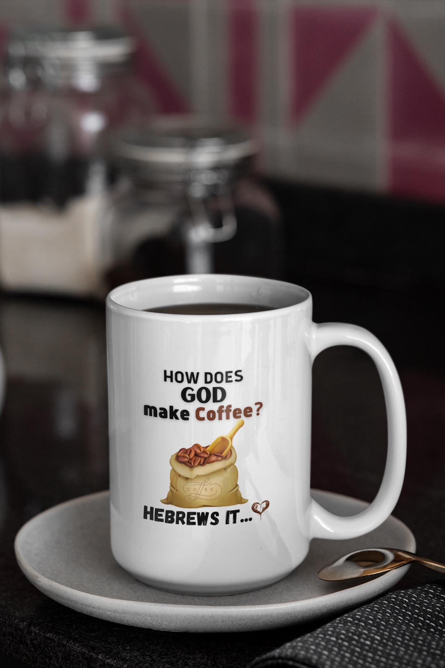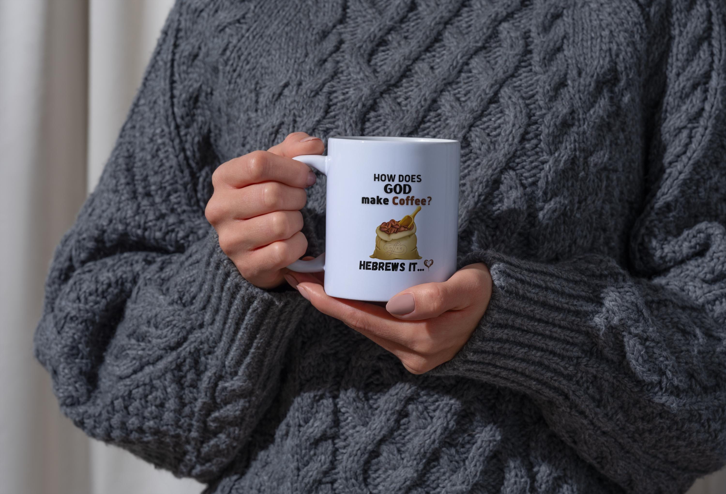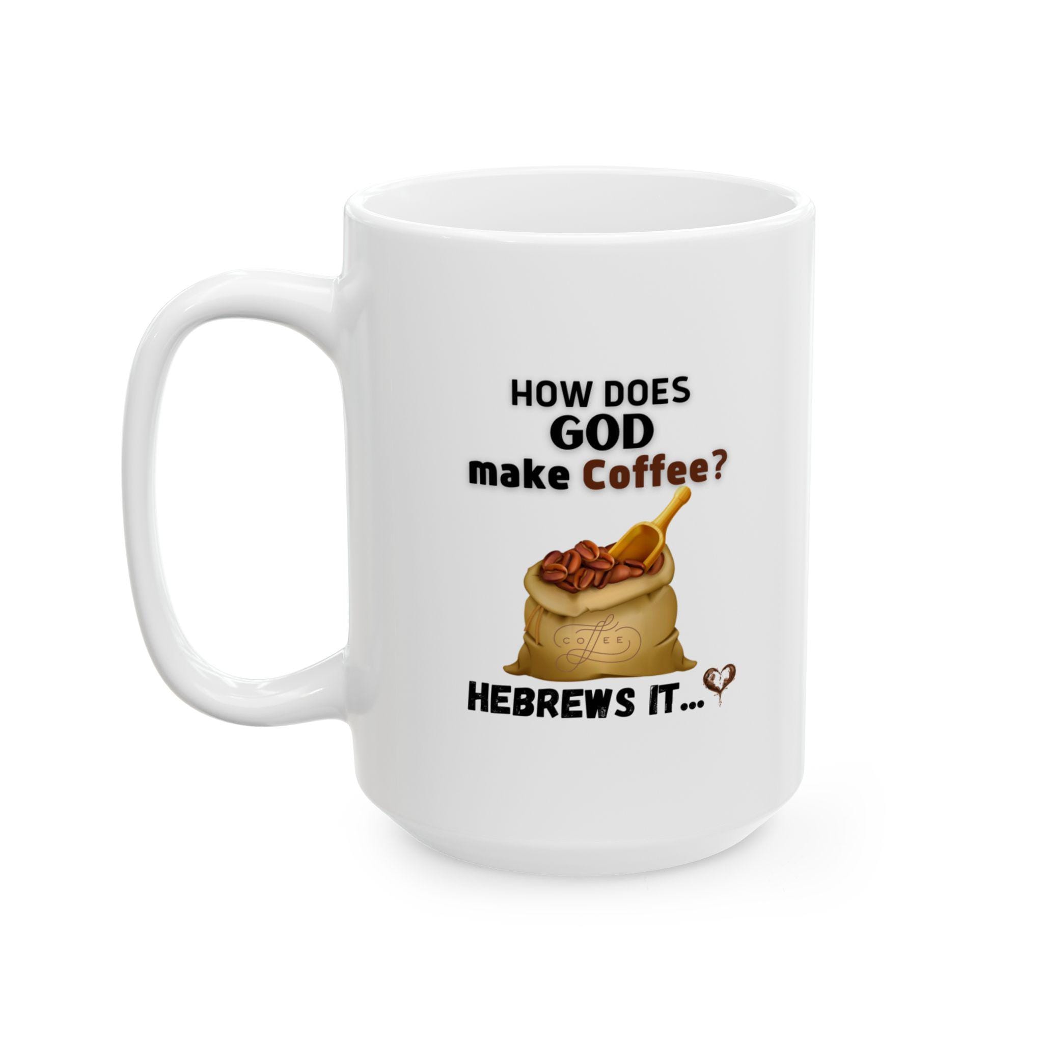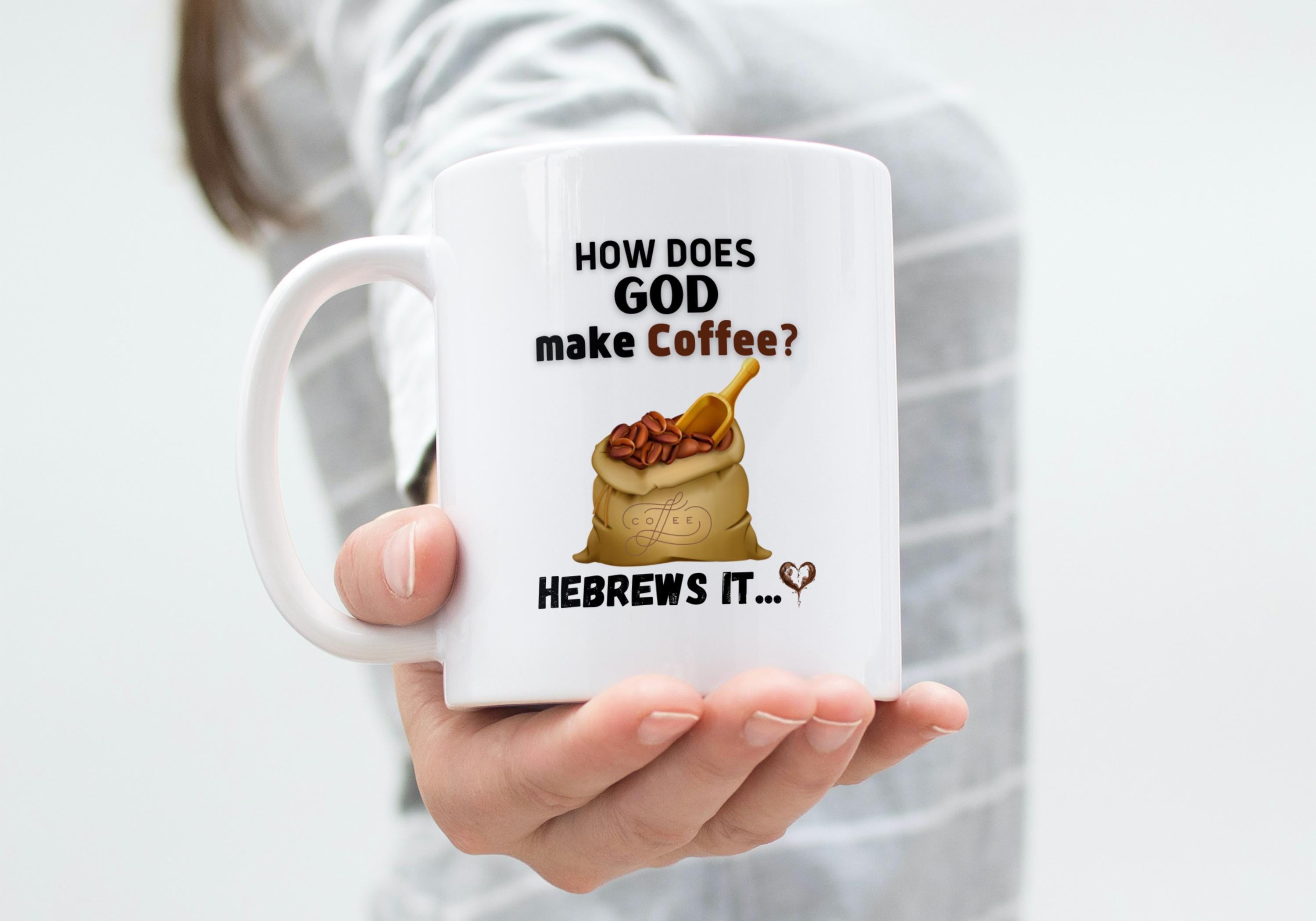 This ceramic mug speaks with a wry grin and a wink — for mornings when your faith and your caffeine need equal parts attention. The bold, humorous line about God brewing His morning cup pairs reverent irony with casual comfort. Hold it in your hands and feel the glossy surface warm as you take that first sip. It slides into the rhythm of quiet kitchen routines, church coffee hours, or late-night Bible study runs when someone needs a laugh. The print stays crisp and bright, so the joke remains clear through everyday use. It’s the kind of mug that starts conversations, lightens the mood, and lands a knowing smile from fellow believers who like their scripture with a side of sarcasm.